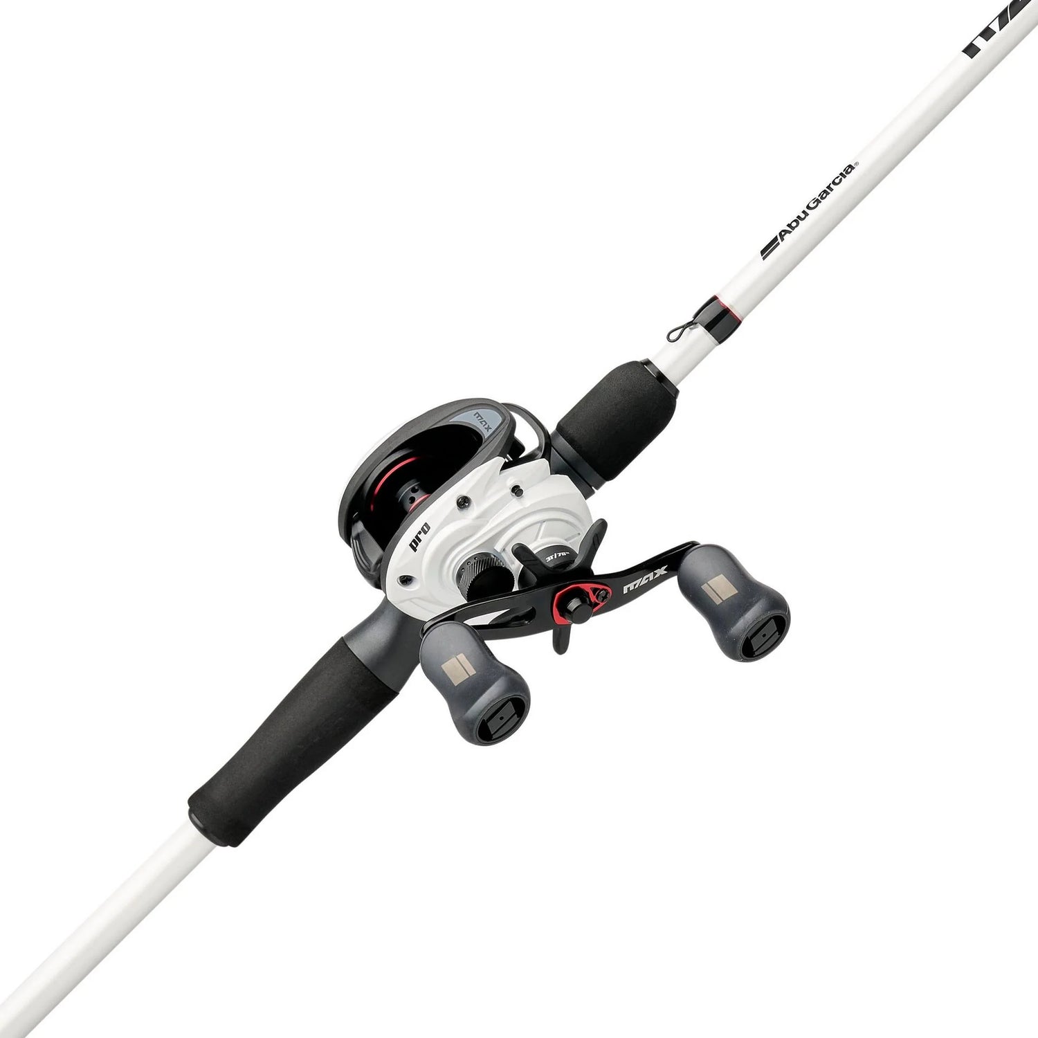 - Experience better-than-ever Abu Garcia engineering for MAXimum performance with the Abu Garcia Max Pro baitcast combo. 24-ton graphite for a lightweight balanced feel with EVA split grip design. Paired with Abu Garcia Max Pro casting reels, featuring a new a-sym frame design along and upgraded carbon drag systems. An aluminum 90mm bent handle is furnished with oversized co-molded soft touch knobs to provide a comfortable grip and buttery smooth retrieve.