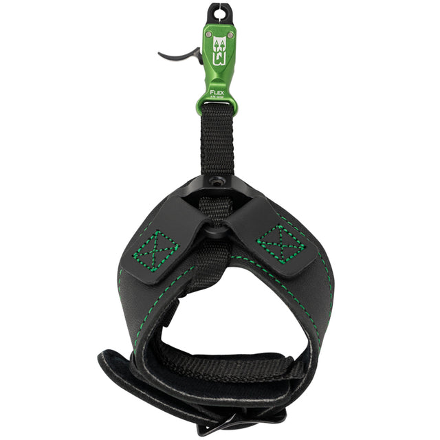 The Rival Flex features black aluminum jaws and a curved trigger. With a standard size wrist strap, color coordinating head and connector bracket, this Rival Flex is a great looking, high quality release that will perform well without breaking the bank. Our patented flex connector is the easiest system on the market today, with just one screw that moves in and out you can fit the release to any hand size. The Rival is the best economy double-caliper release in the world.