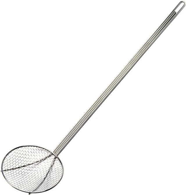 With increasing popularity of crawfish boils and large batch outdoor cooking, the Bayou 36 in mesh skimmer is a must have accessory. The sturdy 36 in handle stirs deep into large size boiling pots. The 8 in bowl serves a large amount of crawfish, shrimp, peanuts and vegetables. Use open loop at handle end to hang on the wall until next event. Perfect compliment to Bayou boilers.