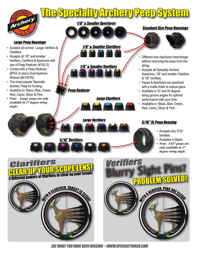 - The peep should be inserted in the string so the side with the verifier, clarifier, or aperture is on the side you look through.
