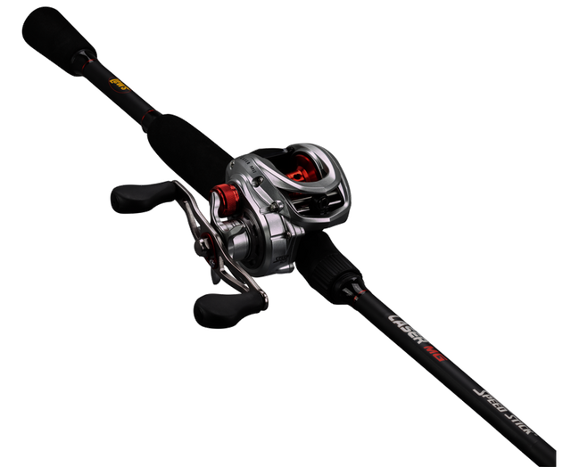 Climb the leaderboard with Lew’s® Laser® MG Baitcast Combo. Enjoy smooth and powerful reeling with a premium 8-bearing system, a Zero Reverse® one-way clutch bearing, an anodized aluminum U-shape 32mm spool, and an externally adjustable Magnetic Control System (MCS). Experience long-term reeling precision from high-strength solid brass Speed Gears®. Cast confidently with a rod built from a premium IM6 graphite blank, equipped with stainless steel guide frames and stainless steel inserts, EVA split grips, and a patented “No Foul” hook keeper.