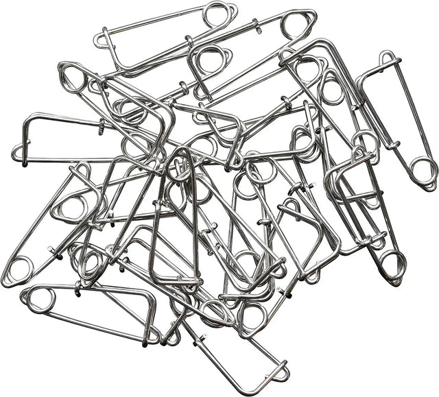 Tackle Beacon's stainless steel trotline clips - the go-to solution for swift and secure line attachment in catfish trotline fishing. This pack includes 25 high-quality stainless steel clips, ensuring durability and reliability. With these clips, you can swiftly and safely attach or remove the leader line, making your trotline setup and breakdown a breeze.