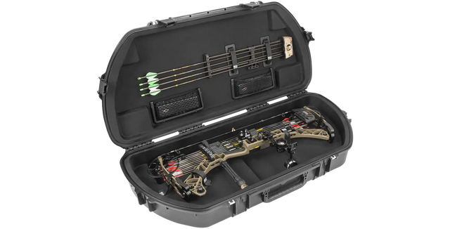 Featuring the same waterproof, virtually-indestructible, military-grade construction of all SKB iSeries cases, but with an innovative curved bow shape that reduces weight and provides a more compact footprint. The 3i-4318-PL fits bows up to 41” long and 17” wide and includes hook-and-loop tie-downs for a secure fit, storage below the bow for a dozen arrows, lid storage for a quiver, and two mesh pockets for accessory boxes (SKB part# 3i-0702-1, sold separately) or other gear.