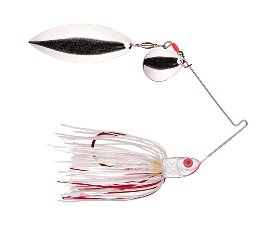 Take one of the most popular multi-species spinnerbaits on the market, add a red hook and bleeding accent skirt and what do you have? One deadly little fish-catching dude. Tie one on and catch everything that swims! Research shows that a red blood trail triggers a natural feeding response in predatory fish. Premium stainless steel wire.